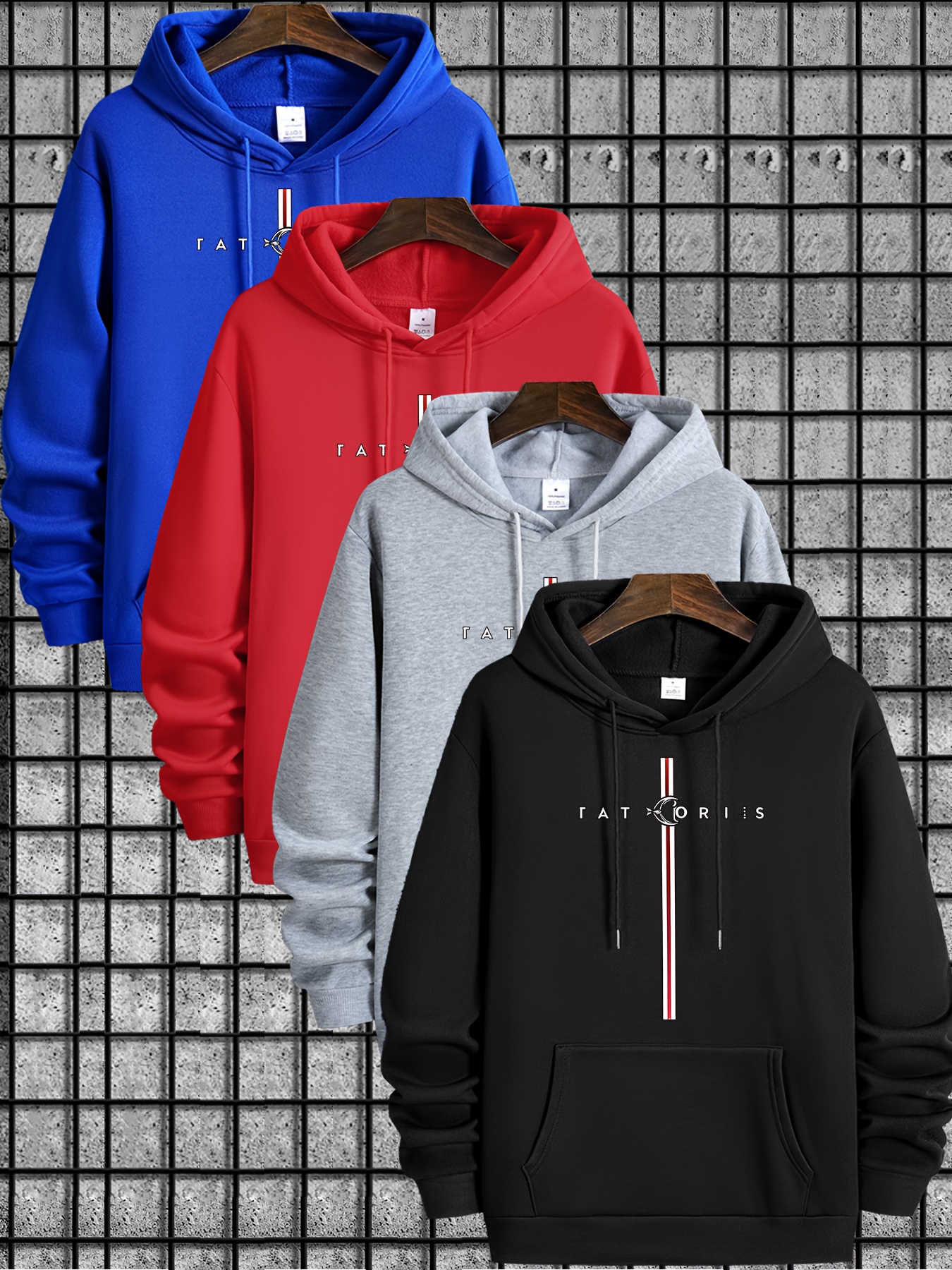[4pcs Tatoris Print Sweater Set] 4pcs Men's Tatoris Print Sweater Set | Fashionable & Casual Drawstring Hooded Sweaters | Comfortable Long-Sleeved for Autumn & Winter