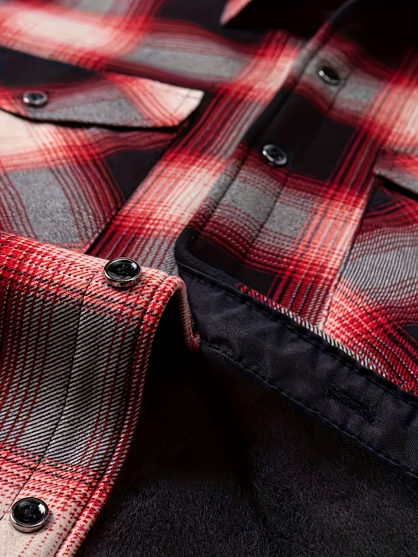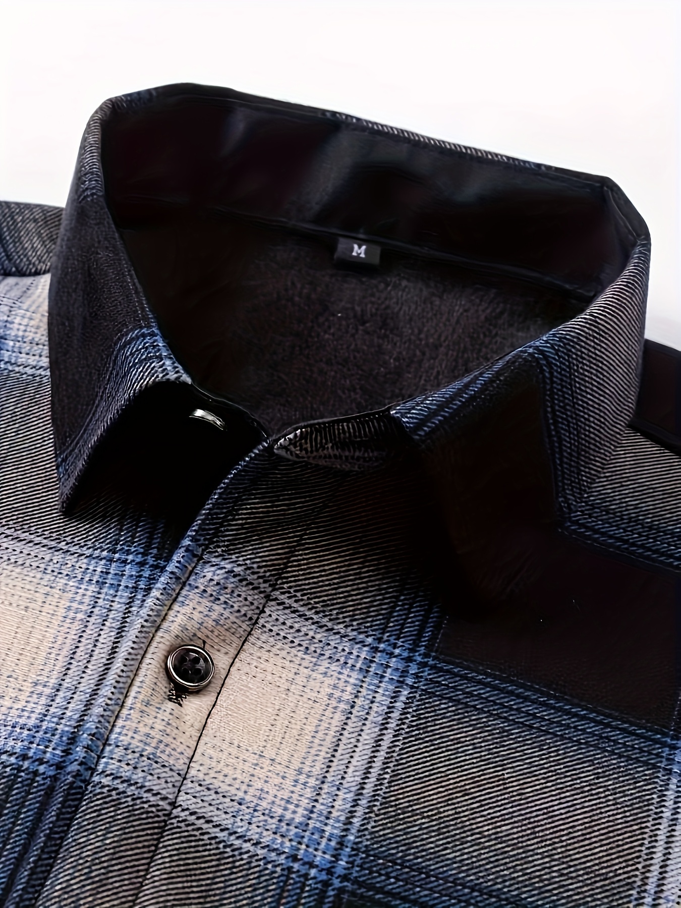 Autumn and Winter Thickened Fleece-Lined Men's Classic Outdoor Casual Home Office Wrinkle-Resistant Plaid Shirt with Multiple Pockets