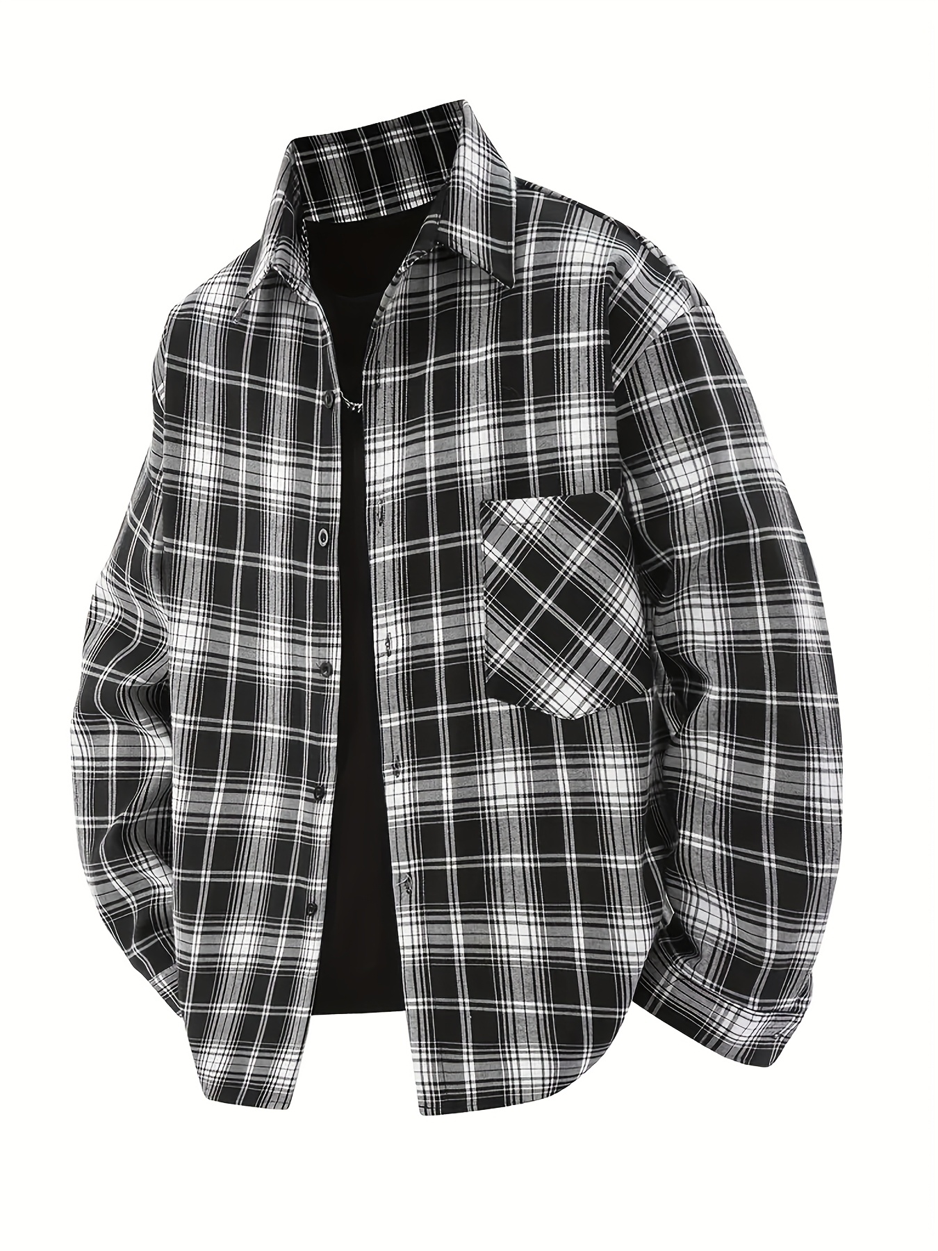 3pcs Men'S Scandinavian Vintage Plaid Shirt Set - Loose Fit, Breathable Rayon, Long Sleeve with Button-Up Design, Perfect for Fall & Spring Casual Wear, Casual Wear Shirts|Vintage Plaid Shirt|Asymmetrical Hemline, Thick