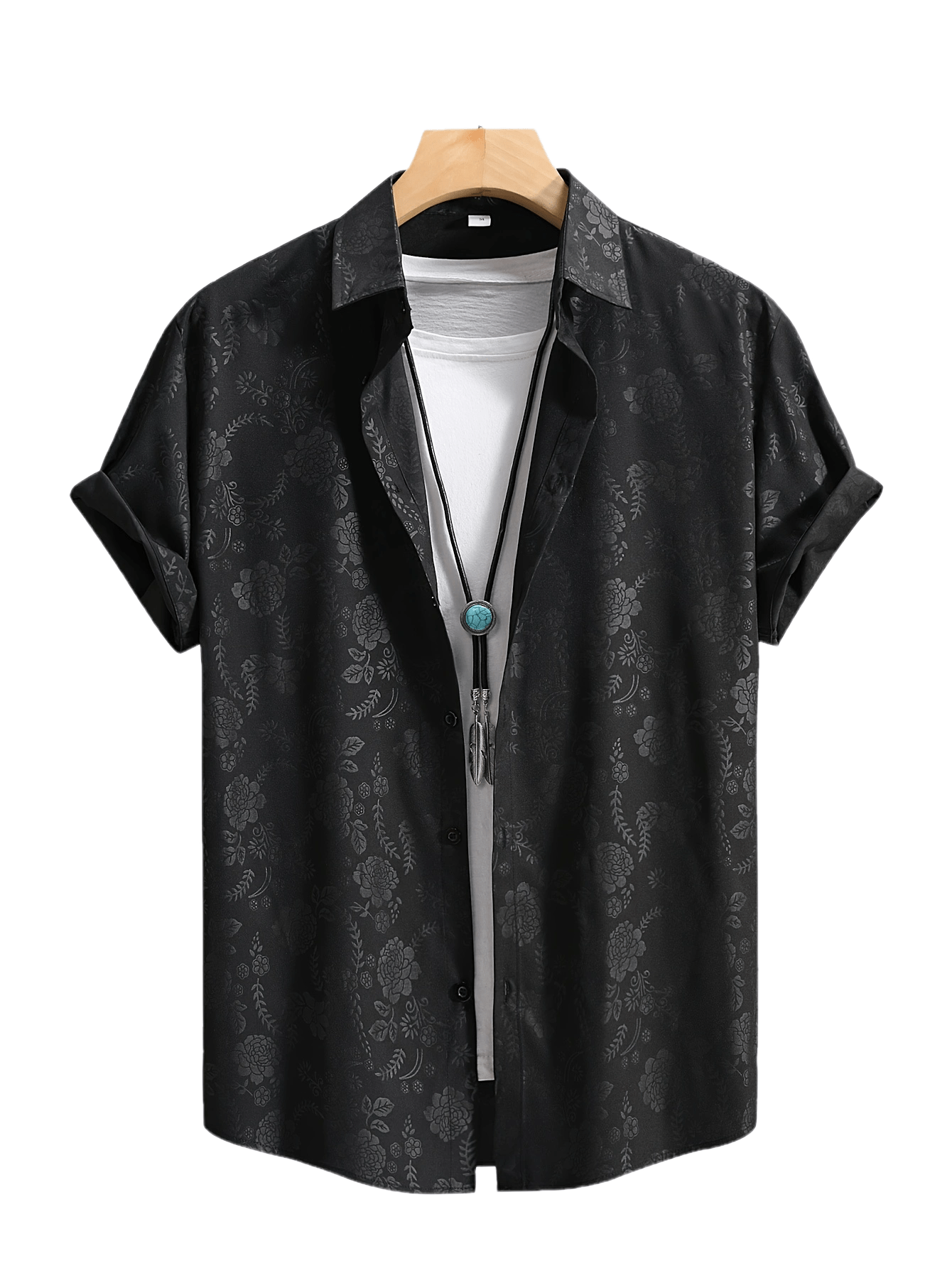 [Floral Shirt] Men's Lightweight Summer Casual Short Sleeve Shirt with Stylish Floral Print, Black & White Design, Polyester Blend, Perfect for Casual Attire, Short Sleeve Tops