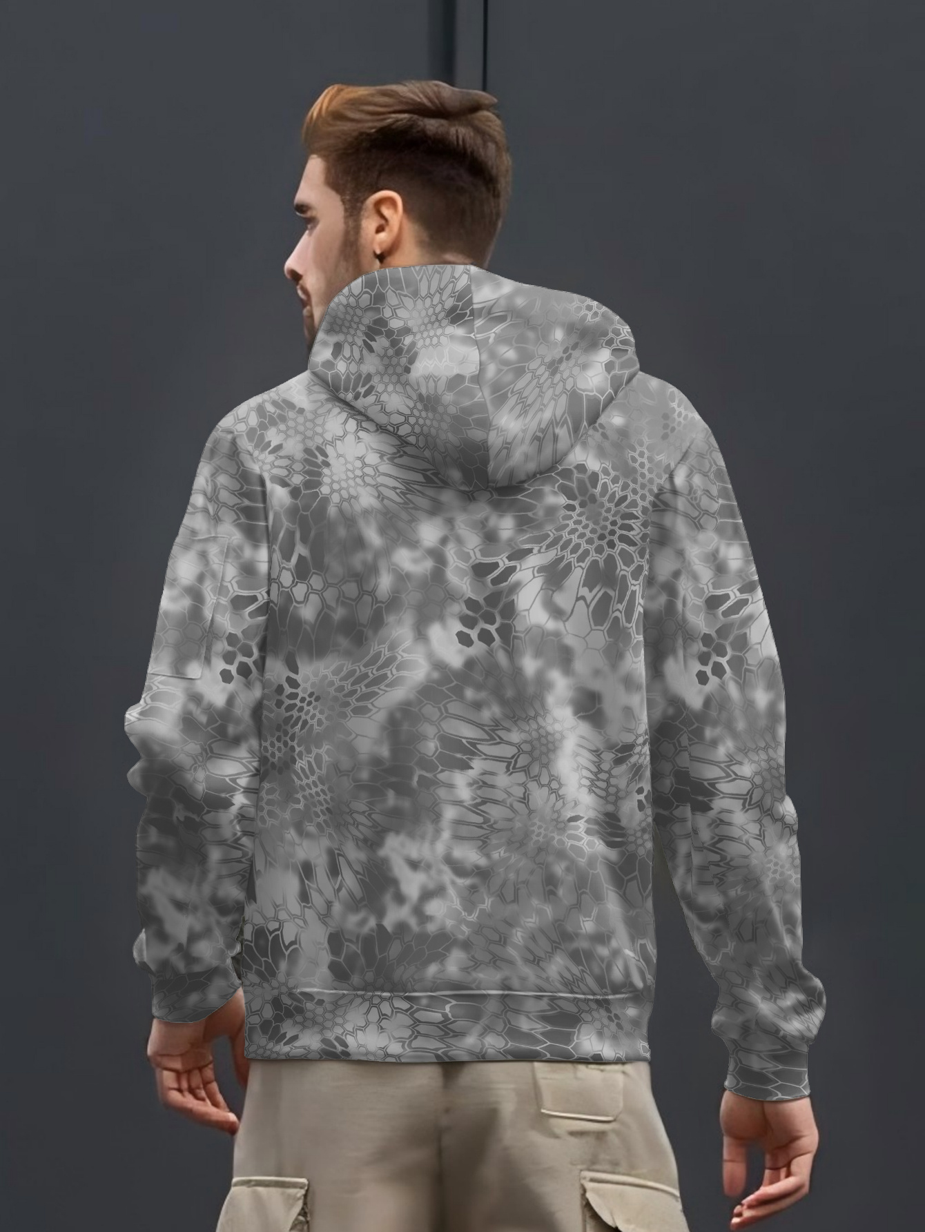 [Heavyweight Camo Hoodie] Heavyweight 290g Men's Camo Print Zip-Up Hoodie | Long Sleeve Pullover with Pockets, Black & Gray Snake Design, Casual Style, Outdoor Sports Wear | Camouflage Print Hoodie | Durable Outdoor Apparel
