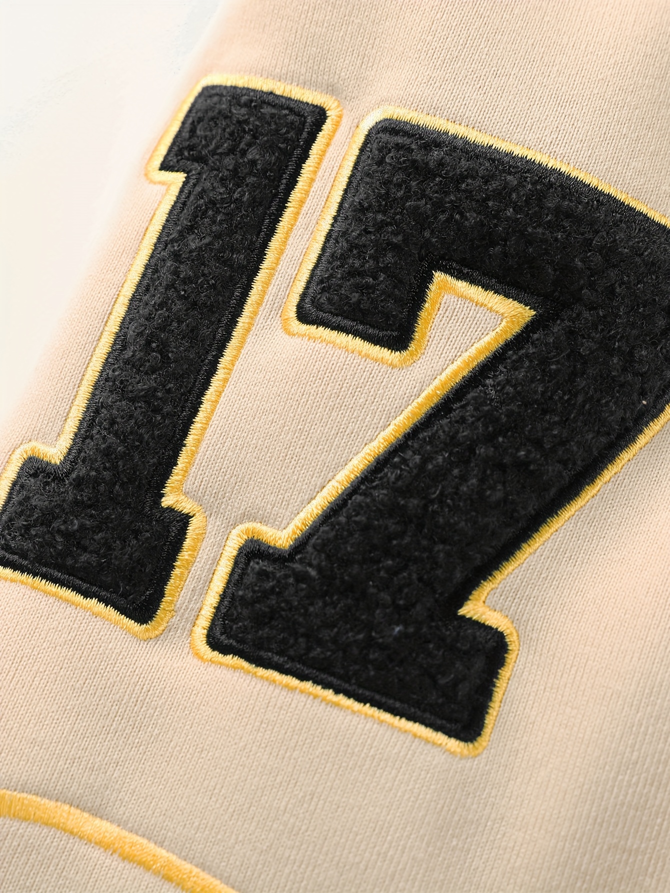 Men's Baseball Jacket with Athletic Dept. Embroidered Logo & Number 17 - Royal Blue & Beige Contrast Design, Baseball Collar, Machine Washable Casual Streetwear Jacket for Casual Attire