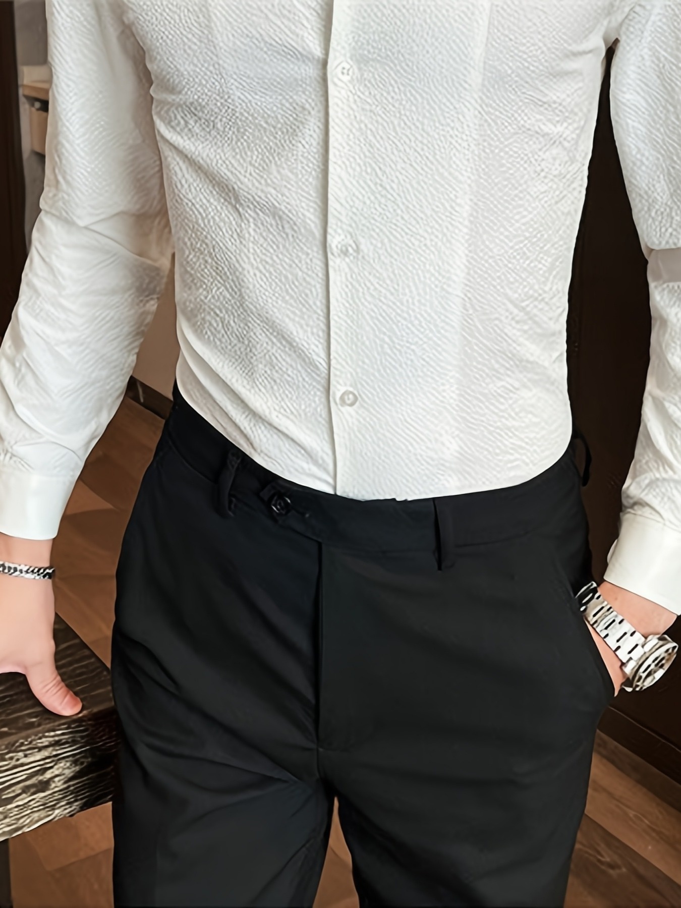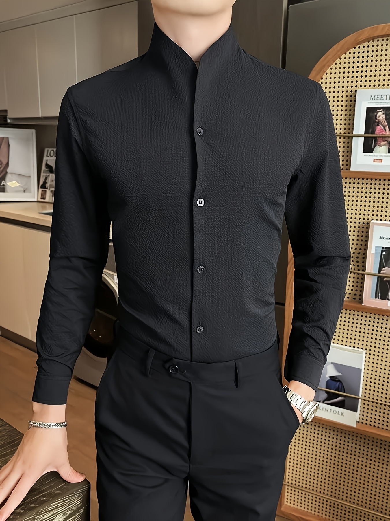 Premium Zhongshan Shirt for Men, Long Sleeve New Spring/Autumn Collection Chinese Style Stand Collar Casual Handsome Dress