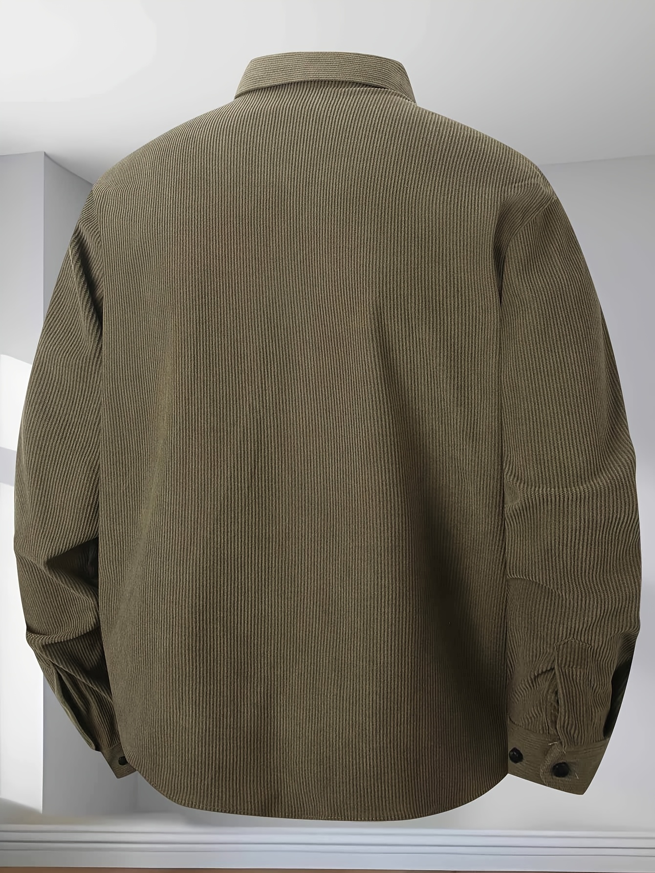 [Men's Corduroy Shirt Jacket] Bohemian Corduroy Shirt Jacket - Men's Solid Color Relaxed Fit Long Sleeve with Chest Pockets, Classic Collar & All-Season Versatile Style for Casual & Formal Wear, Durable Fabric