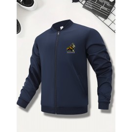 Slim Fit Men's Polyester Athletic Print Design Zip-Up Jacket Casual Stand Collar Fall Winter Coat