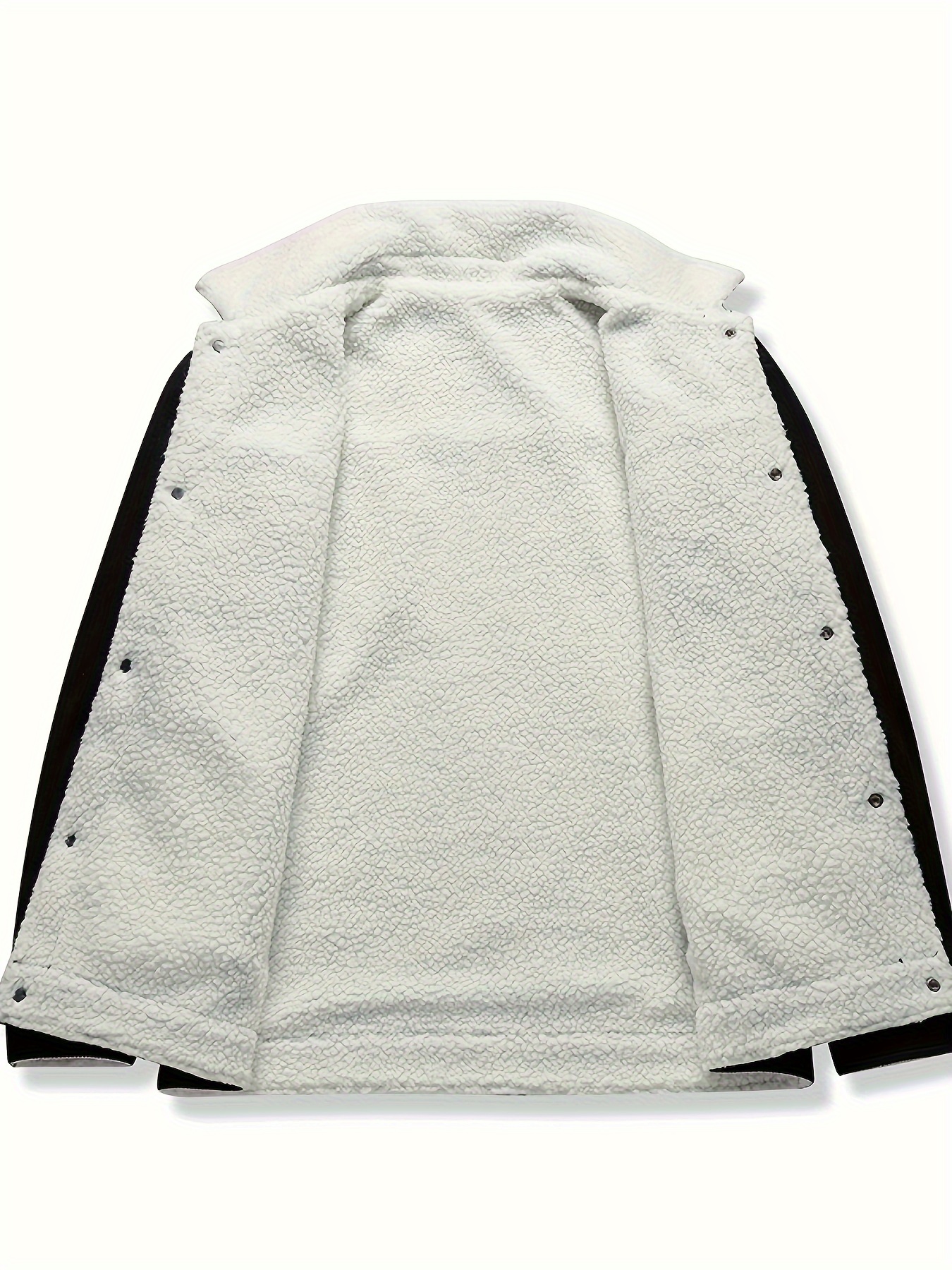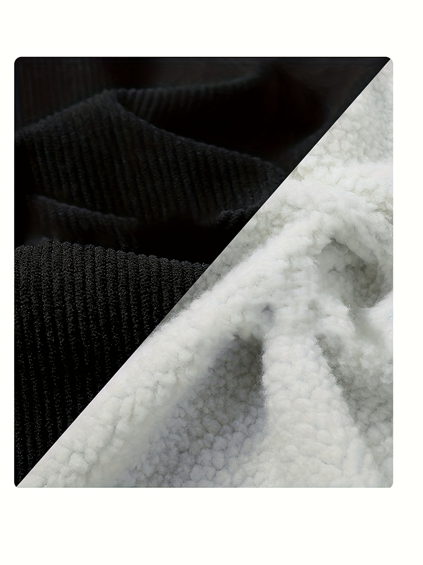 Men's Sherpa Lined Corduroy Jacket with Fleece Collar - 2024 Autumn Winter Casual Warm Thickened Polyester Button-Up Coat