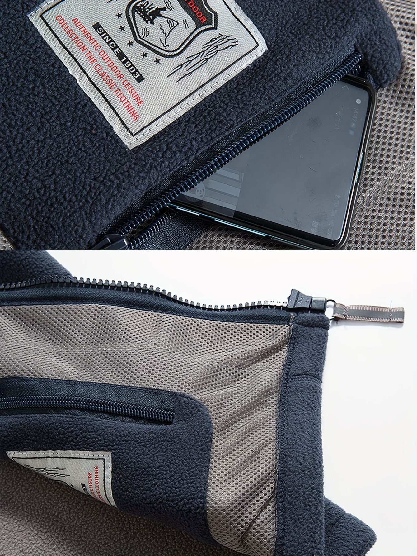 Men'S Patriotic Vest with American Flag Embroidery - Warm Fleece-Lined Fishing Vest for Outdoor Sports, Casual Style, Zip-Up Design, Black & Gray, Polyester Filler, Perfect for Fall/Winter