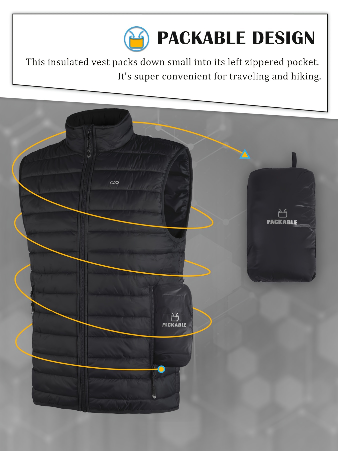 [Windproof Vest] Lightweight High Quality 33,000ft Men's Windproof Insulated Vest | Packable Stand Collar Sleeveless Jacket for Golf Running Tennis, Machine Washable Nylon-Lined Winter Outerwear, Casual Winter Wear