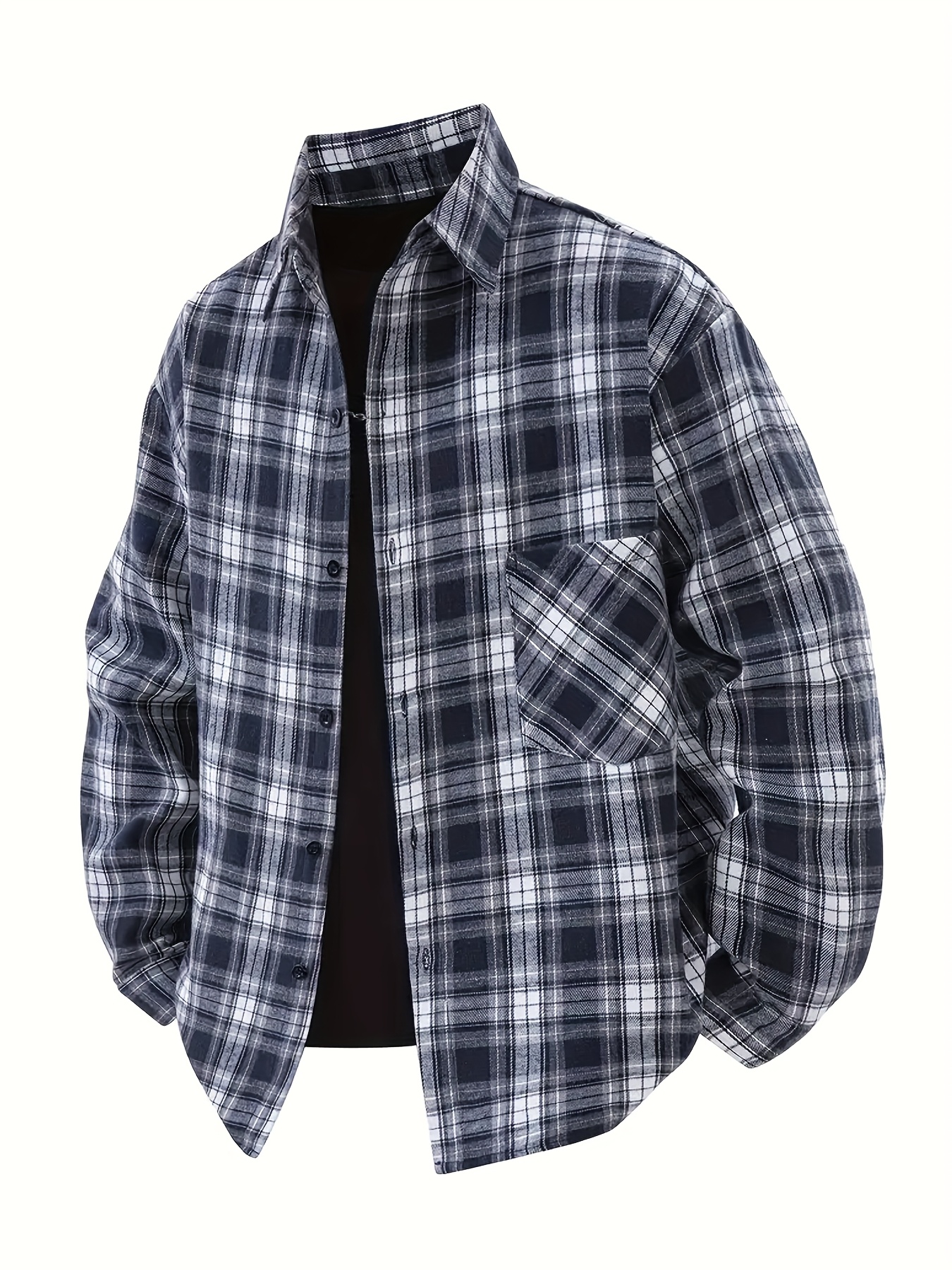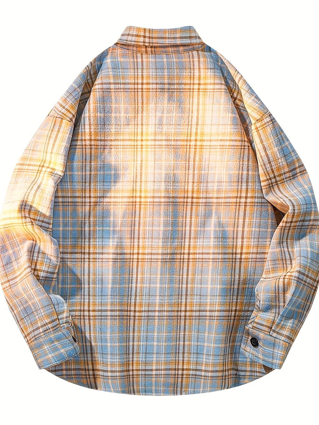 3pcs Men'S Scandinavian Vintage Plaid Shirt Set - Loose Fit, Breathable Rayon, Long Sleeve with Button-Up Design, Perfect for Fall & Spring Casual Wear, Casual Wear Shirts|Vintage Plaid Shirt|Asymmetrical Hemline, Thick