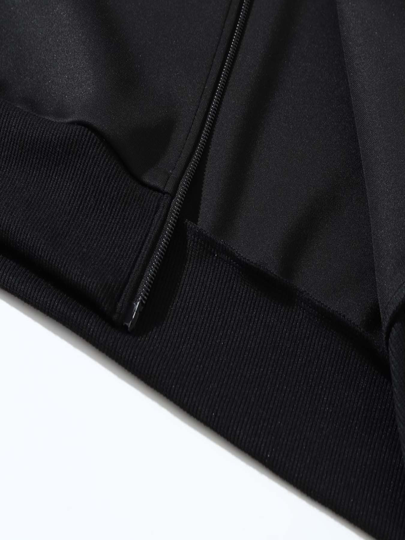 Men's African Tribal Art Print Slim-Fit Bomber Jacket - Black Zip-Up Stand Collar Streetwear Coat with Pockets, Machine Washable Polyester for Autumn/Winter Casual Wear, Sleek Knit Texture