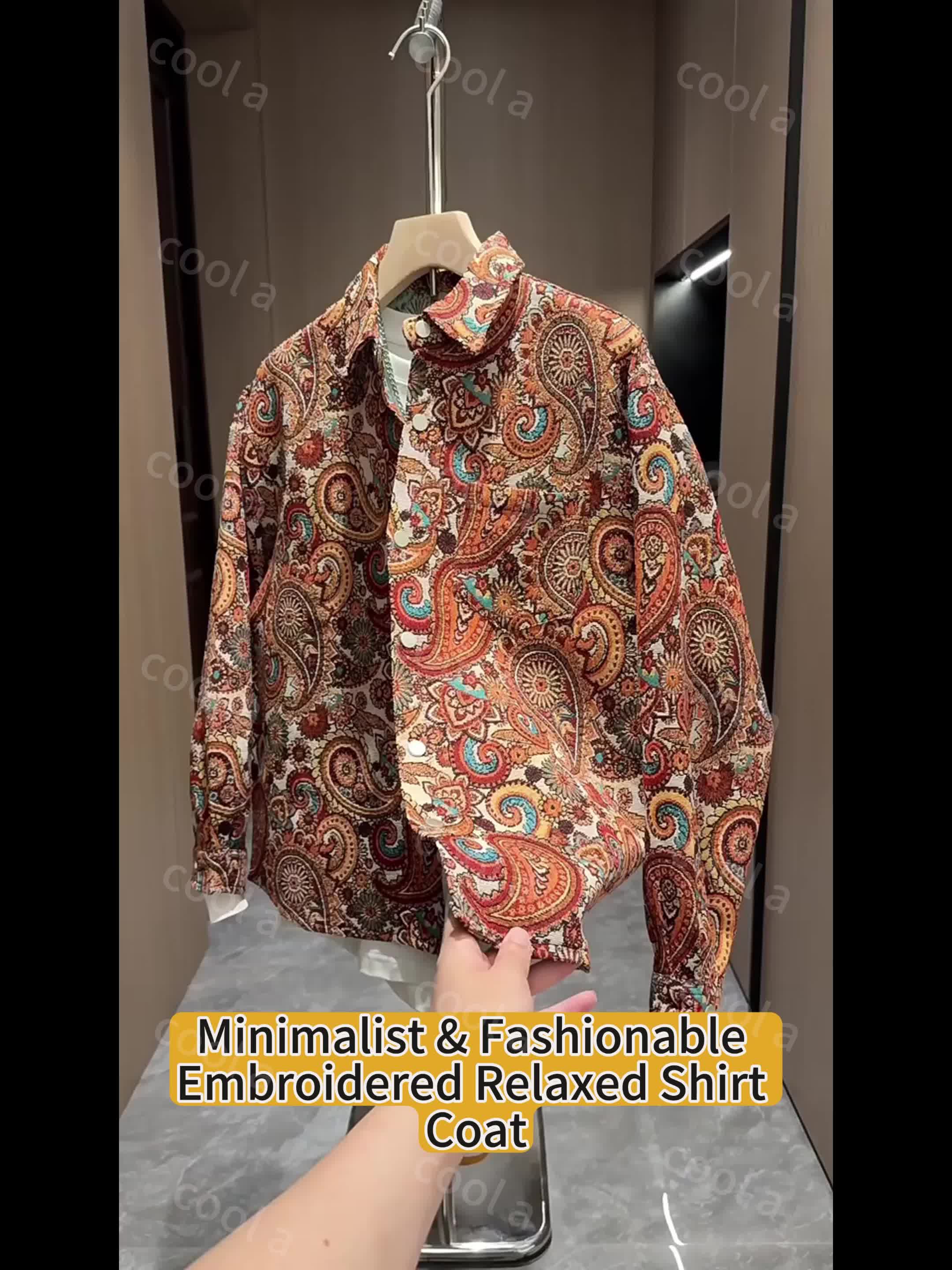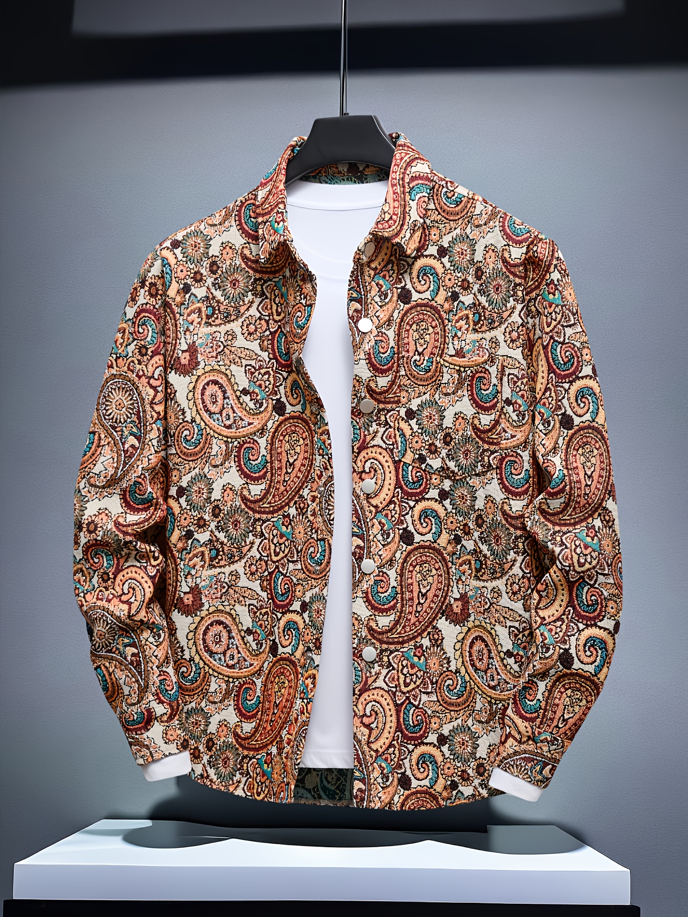 Fashion Apparel, Paisley Pattern Embroidery Craftsmanship Unisex Casual Slim Fit Long-Sleeve Shirt for All Seasons and Gift-Giving
