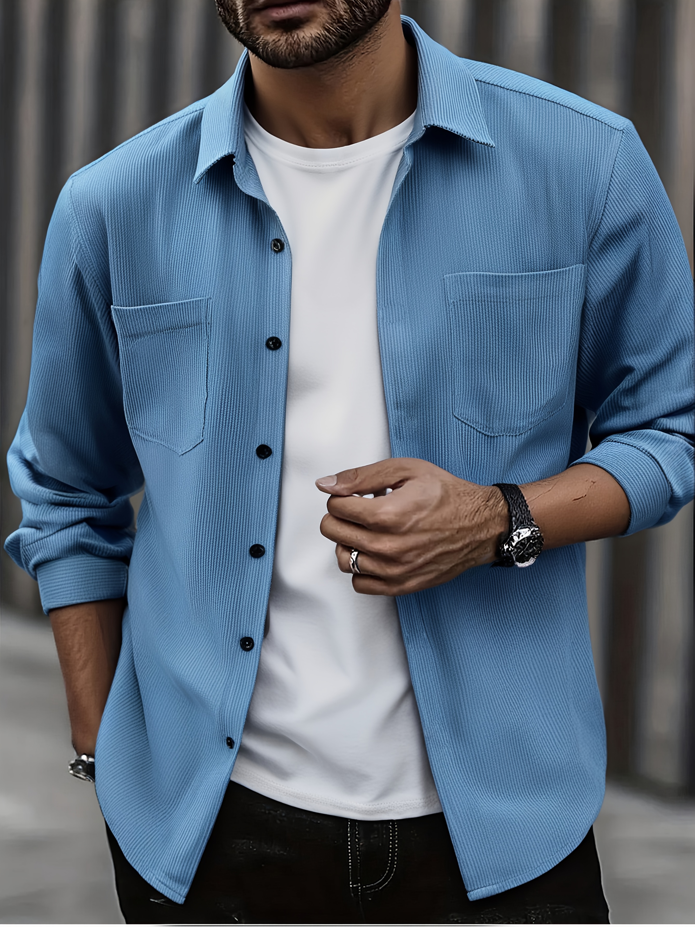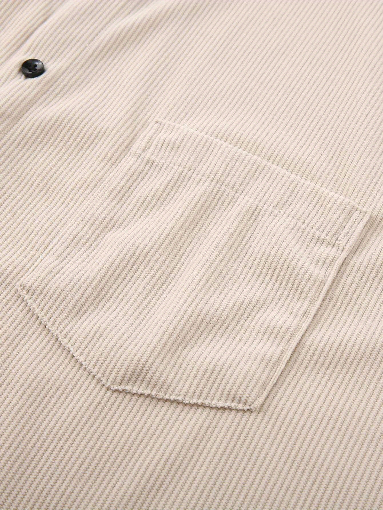 [Men's Corduroy Shirt Jacket] Bohemian Corduroy Shirt Jacket - Men's Solid Color Relaxed Fit Long Sleeve with Chest Pockets, Classic Collar & All-Season Versatile Style for Casual & Formal Wear, Durable Fabric