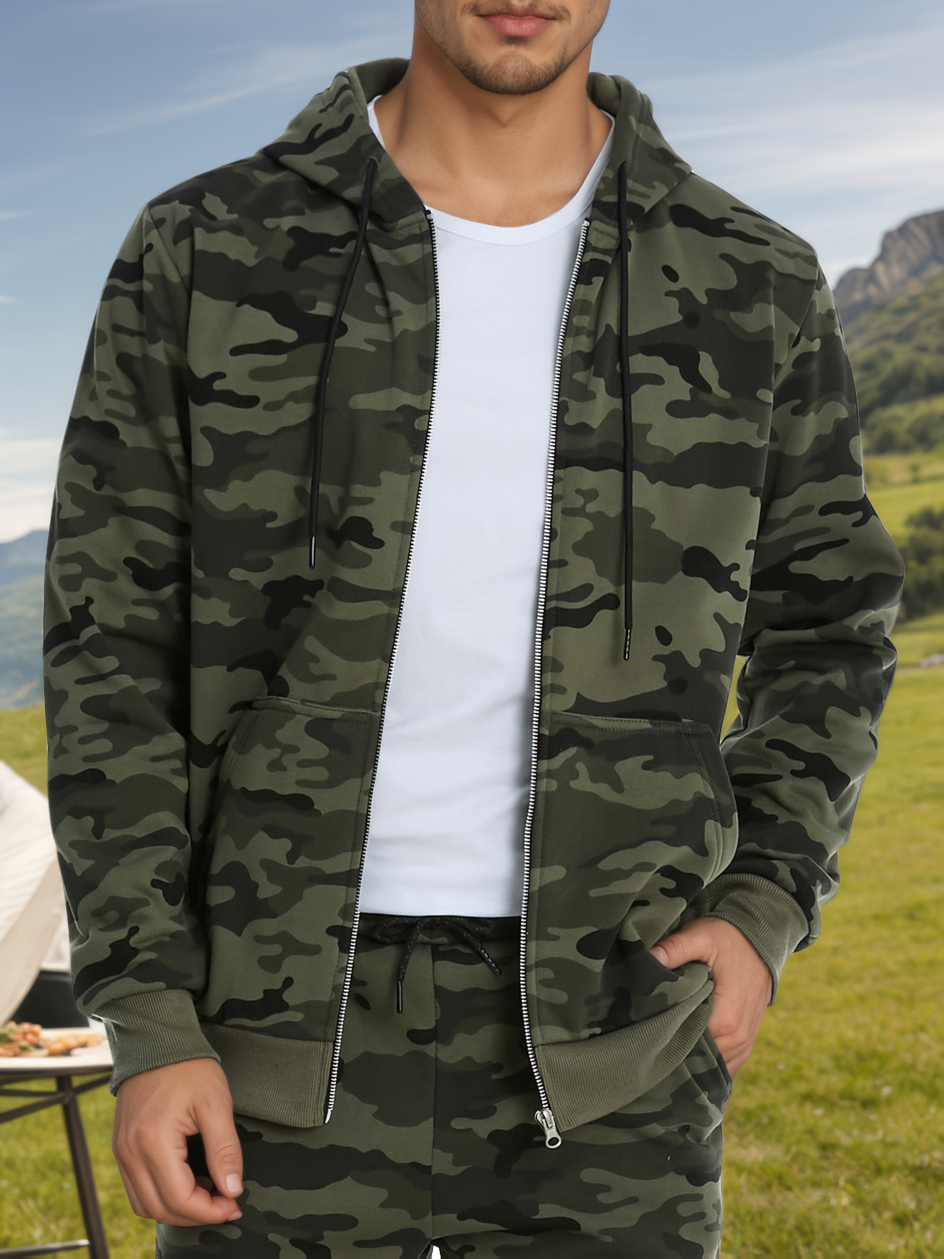 Men's fashionable casual camouflage sports warm fleece hooded sweatshirt