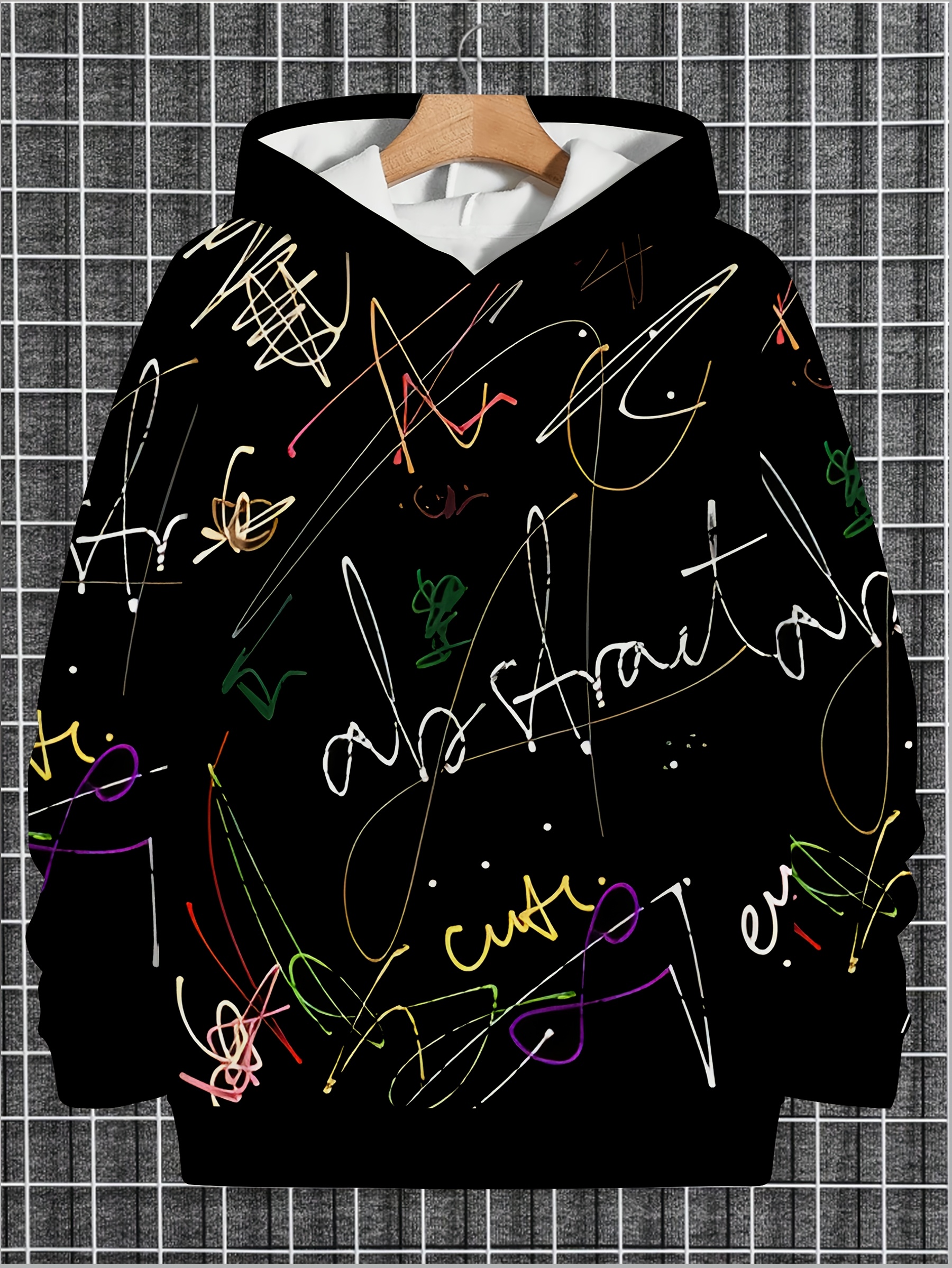 Men's Hoodie - Black with Neon Graffiti Print (Purple, Green, Red, Yellow, White) - Streetwear Pullover Sweatshirt - Machine Washable Urban Fashion Hoodie for Men, Essential Hoodie, Casual Wear, Bold Lettering Design, Comfortable Fabric, Young Adults