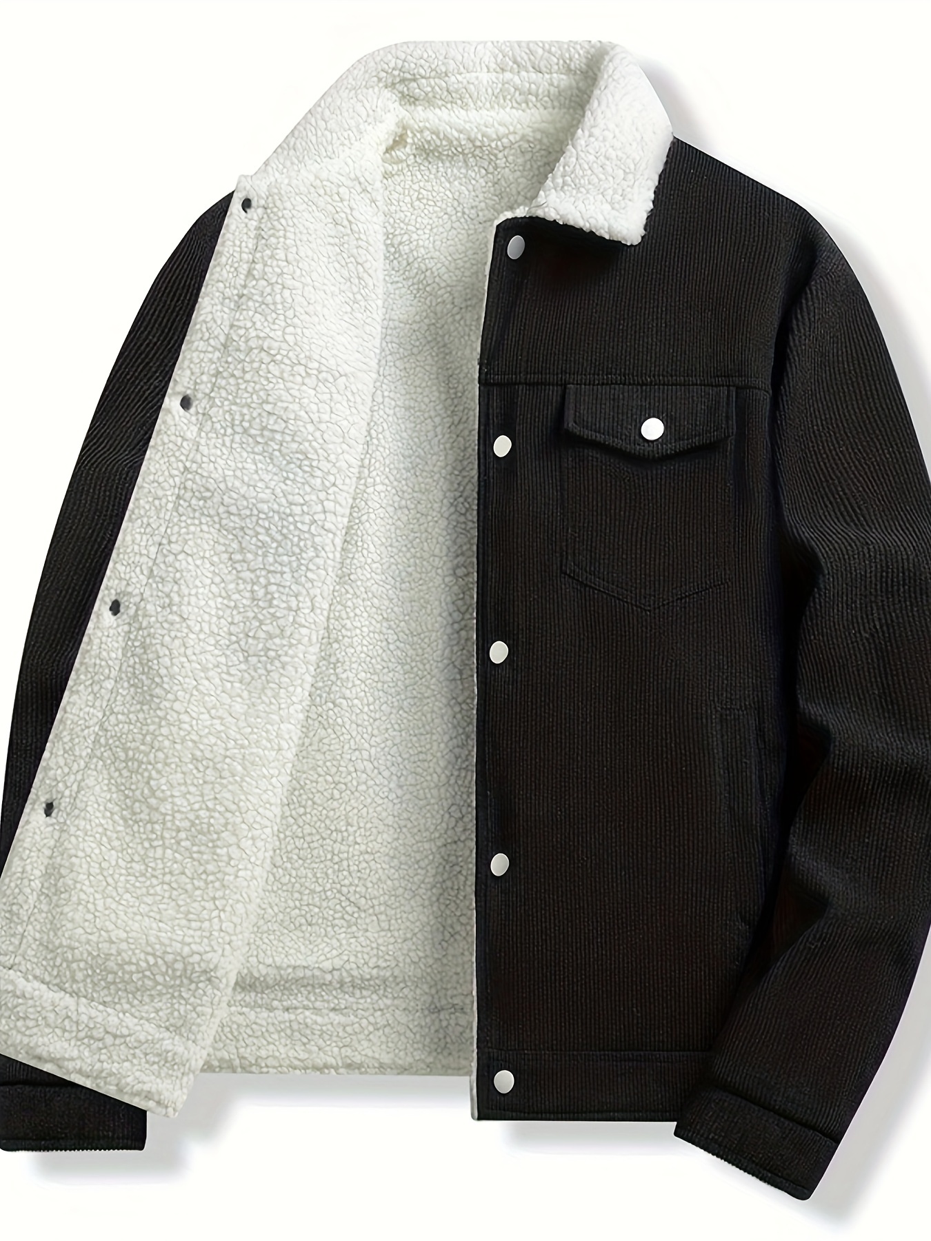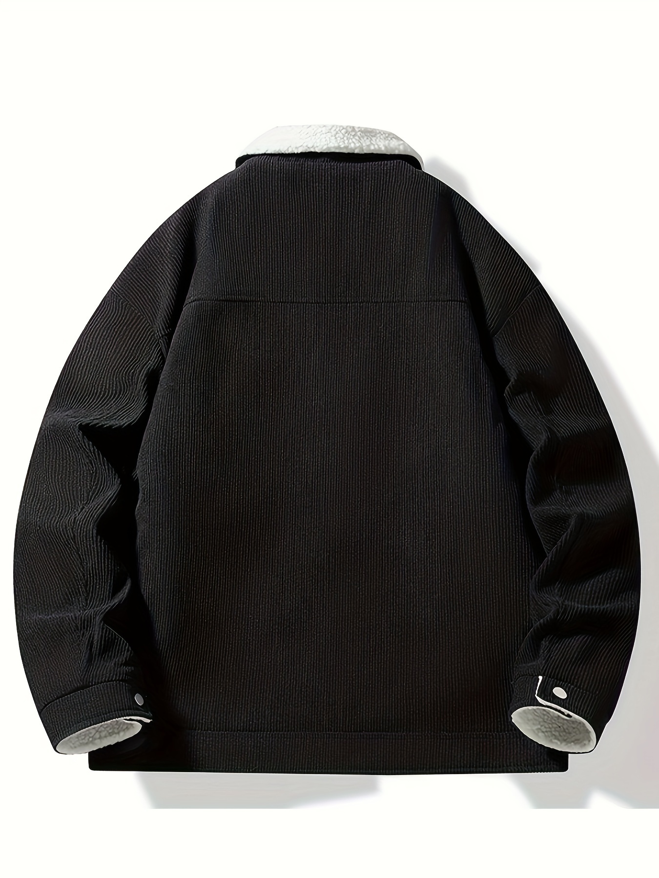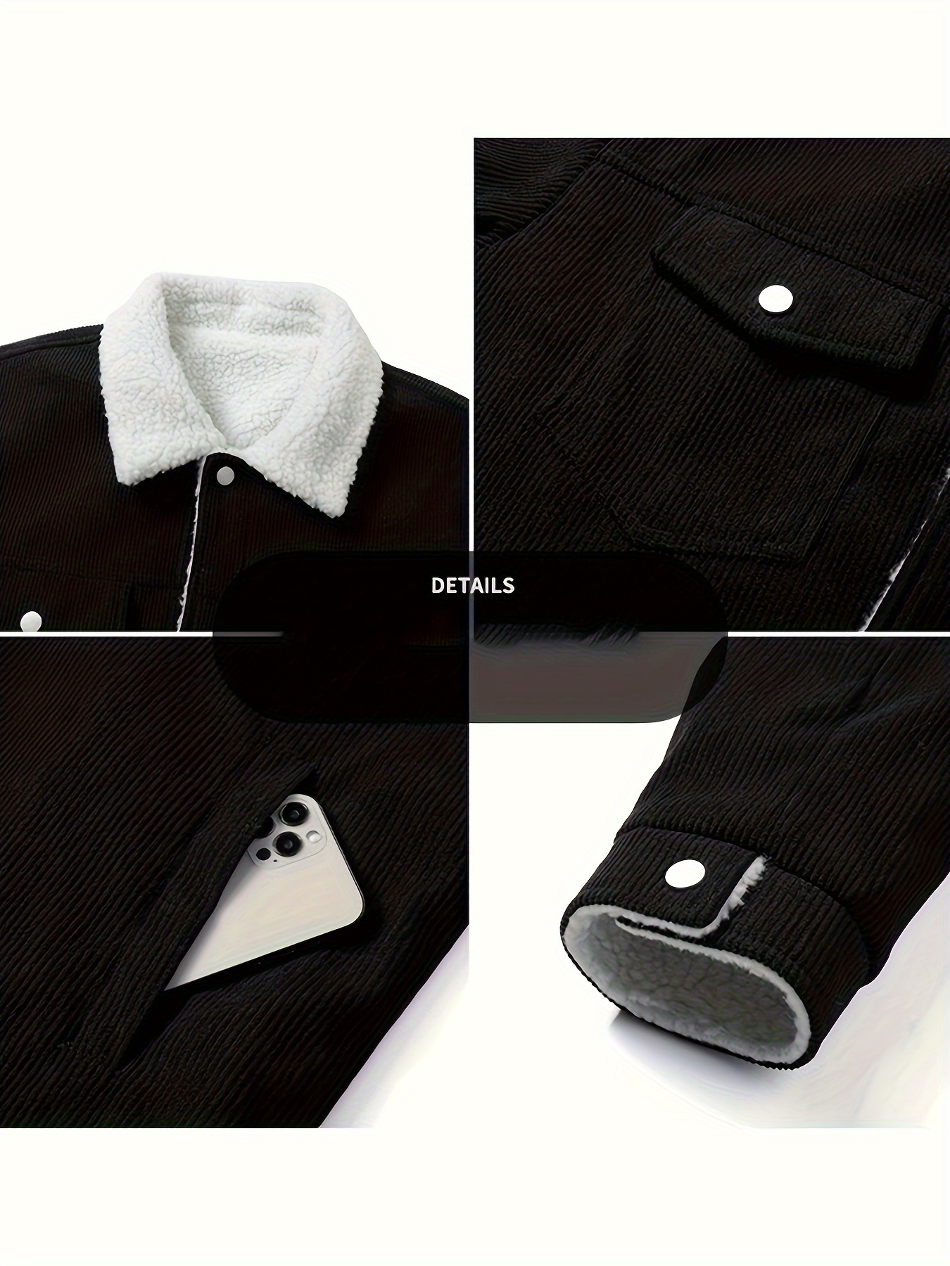 Men's Sherpa Lined Corduroy Jacket with Fleece Collar - 2024 Autumn Winter Casual Warm Thickened Polyester Button-Up Coat