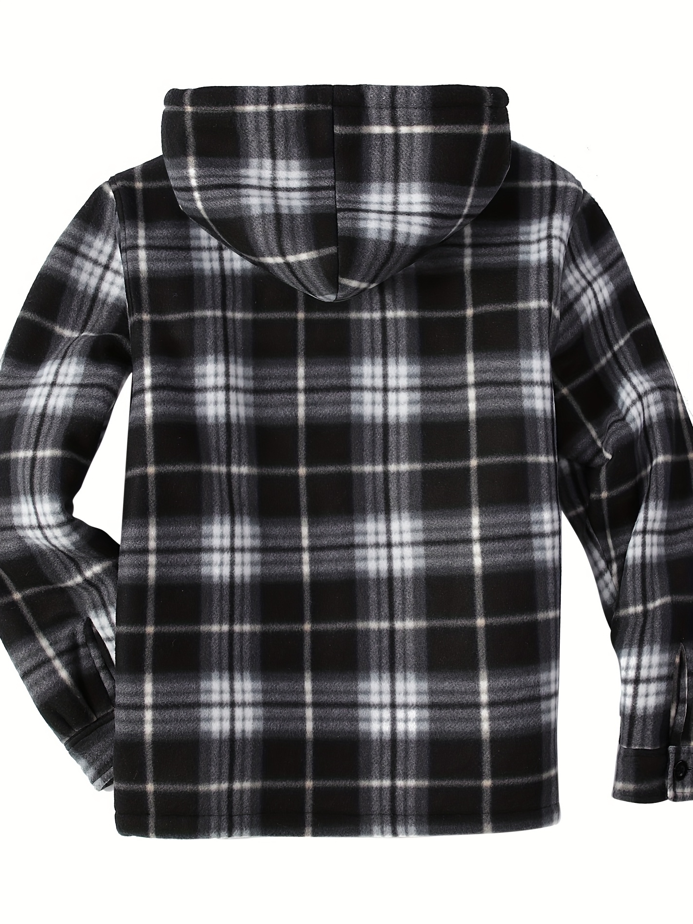 Men's Sherpa-Lined Full-Zip Hooded Jacket - Plaid Flannel Winter Coat with Turquoise/Black/White/Gray Plaid, Machine Washable, Full-Zip Front & Pockets - Casual Outdoor & Everyday Cold Weather Outerwear (Regular Fit)