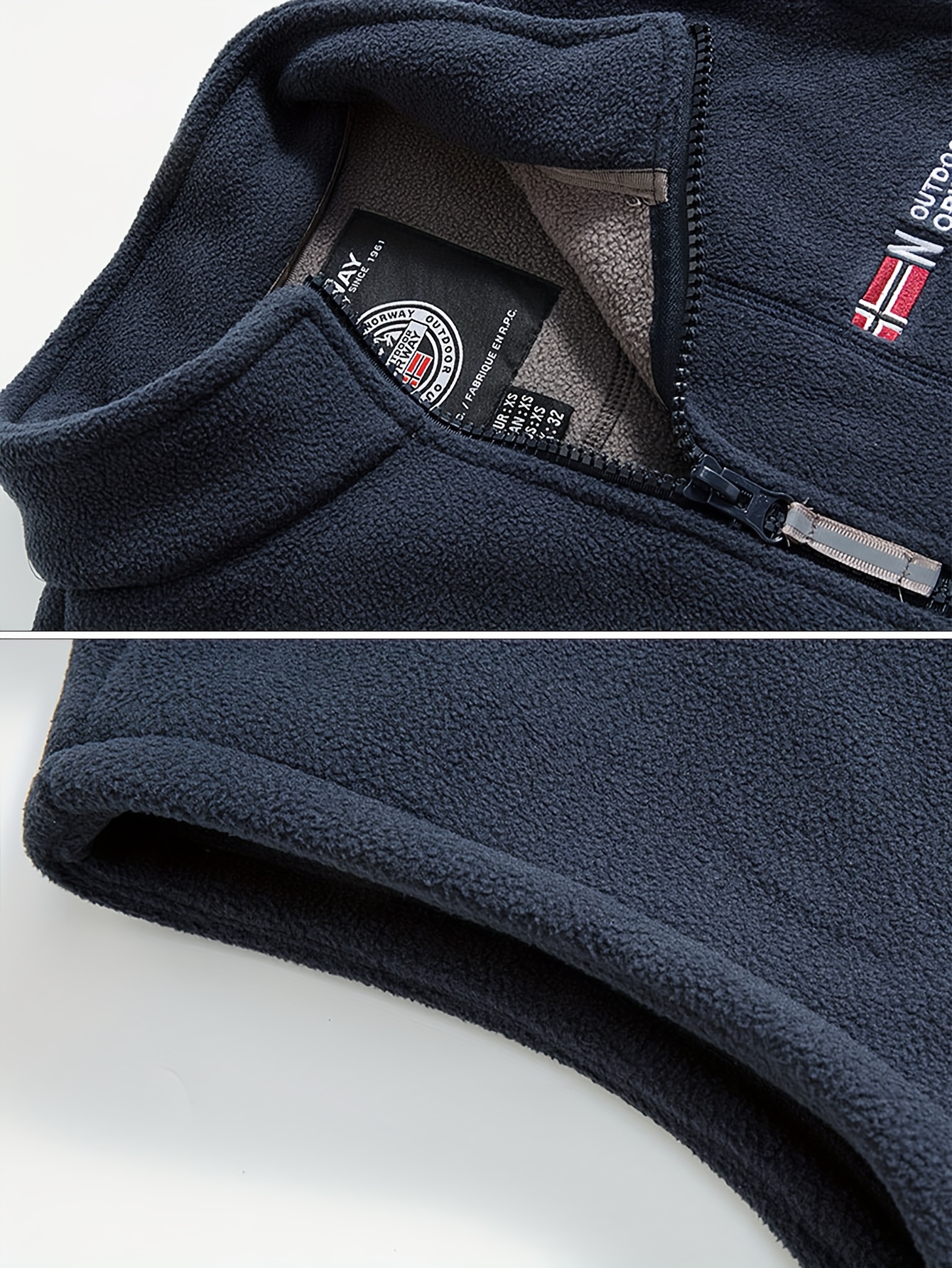 Men'S Patriotic Vest with American Flag Embroidery - Warm Fleece-Lined Fishing Vest for Outdoor Sports, Casual Style, Zip-Up Design, Black & Gray, Polyester Filler, Perfect for Fall/Winter