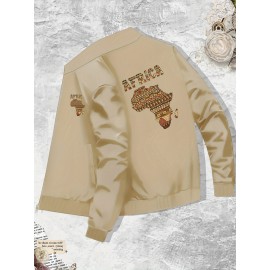 Slim Fit Men's Polyester Athletic Print Design Zip-Up Jacket Casual Stand Collar Fall Winter Coat