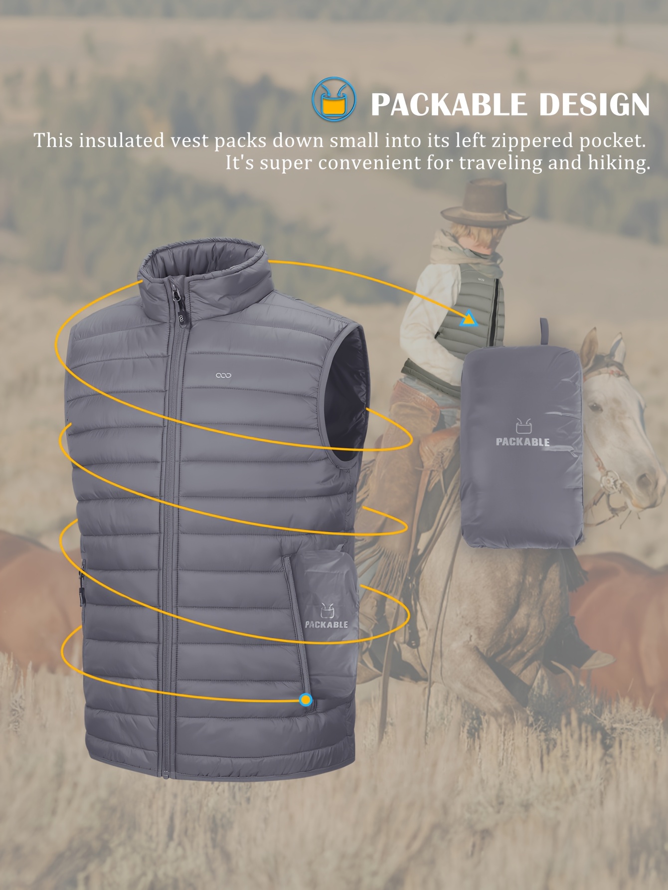 [Windproof Vest] Lightweight High Quality 33,000ft Men's Windproof Insulated Vest | Packable Stand Collar Sleeveless Jacket for Golf Running Tennis, Machine Washable Nylon-Lined Winter Outerwear, Casual Winter Wear